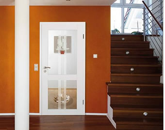 Standardtür glatt, Buche natur, Norm-LA mit Glas Likon | Standardtür glatt, Buche natur, Norm-LA mit Glas Future | Standardtür glatt, CPL Nussbaum-Reproduktion, Dekorlisenen 1SV, silberfarben matt, Zarge KÖNOSOFT |